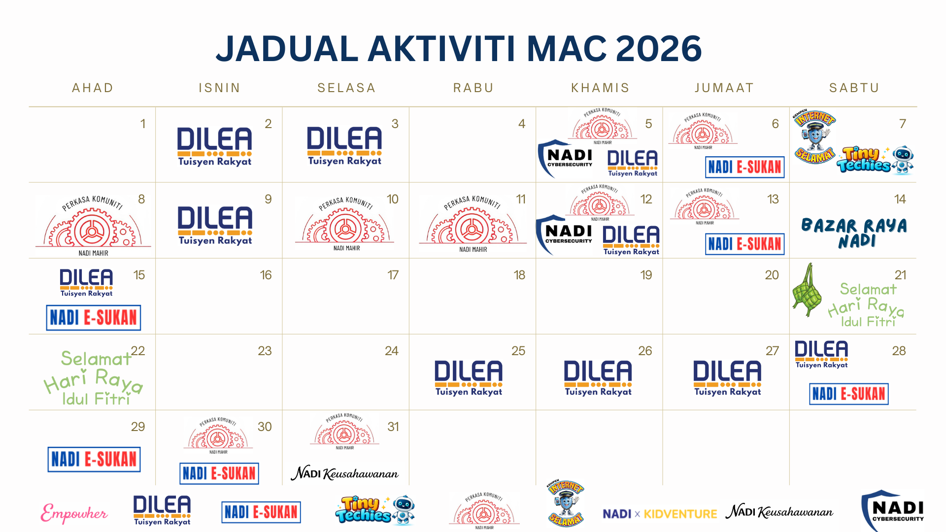 JADUAL AKTIVITI BULAN MAC 2026 @NADI KAMPUNG KUALA SUNGGA