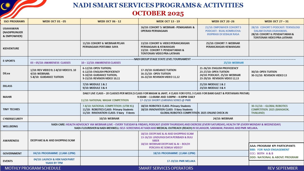 JADUAL AKTIVITI BULAN OKTOBER 2025 @NADI KAMPUNG KUALA SUNGGA