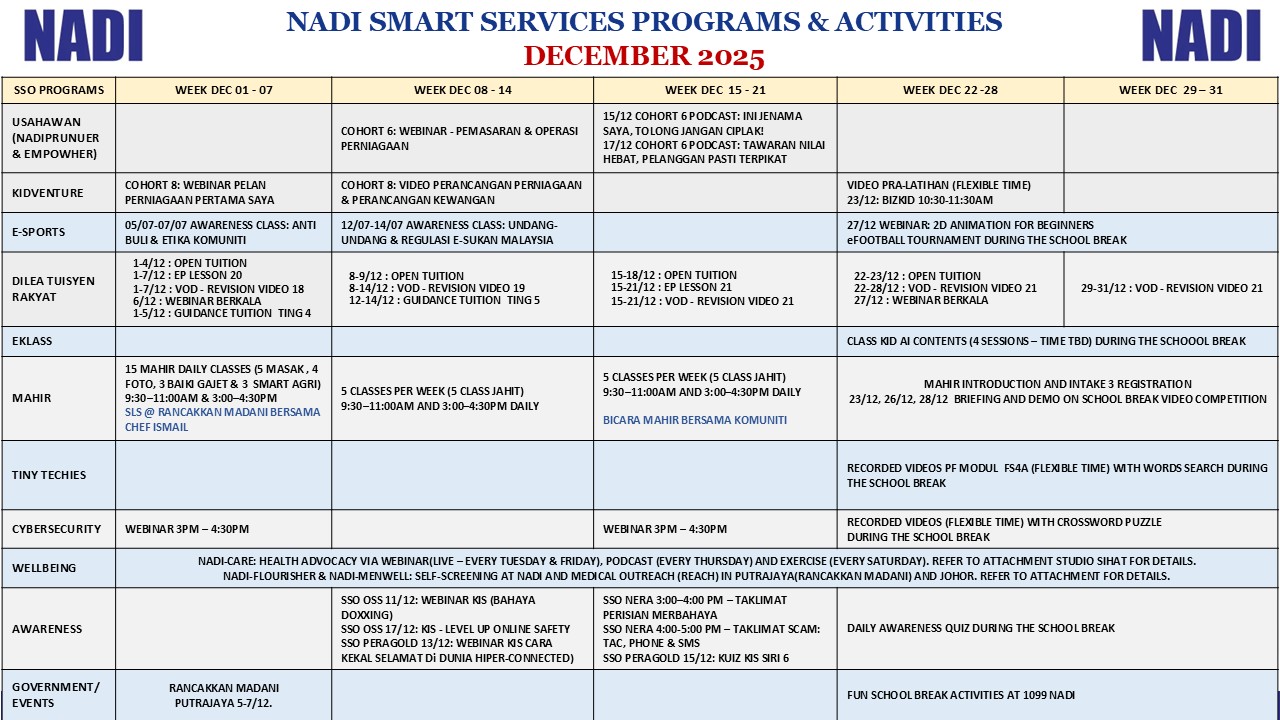 JADUAL AKTIVITI BULAN DISEMBER 2025 @NADI KAMPUNG KUALA SUNGGA
